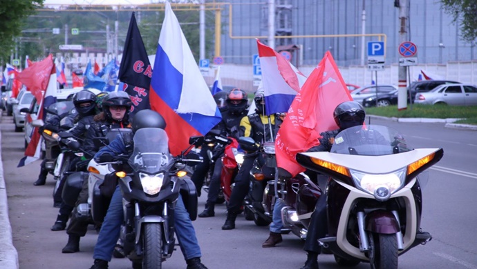 Tıpkı bir yıl önce olduğu gibi, ralli konvoyu Gece Kurtları motosiklet kulübünün bölge şubesinin temsilcileri tarafından yönetiliyordu.