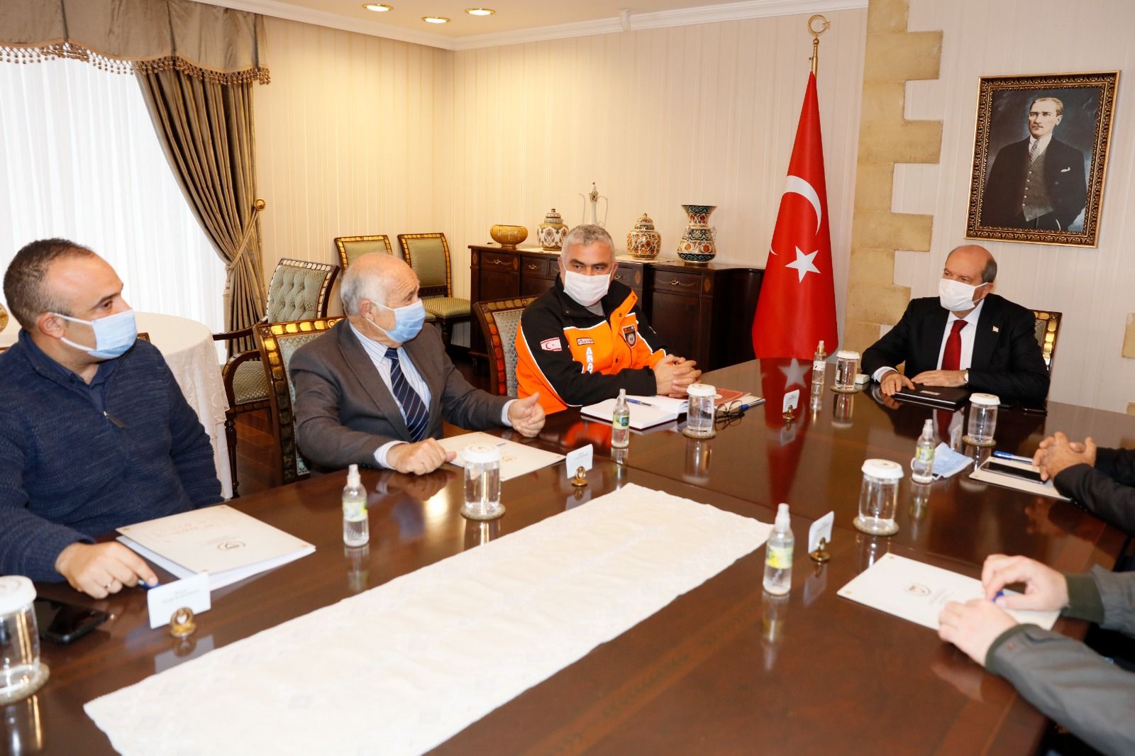 Devletin gerekli kurum ve kuruluşlarının, tam teşekküllü bir şekilde, olası artçı veya yeni depremlerle ilgili iş birliği içerisinde çalışması için hazır olmasının önemine vurgu yapan Cumhurbaşkanı Tatar; devletimizin her olasılığa hazır, her koşulda aktif, hızlı ve sistemli bir çalışma mekanizmasına sahip olduğunun altını çizdi.