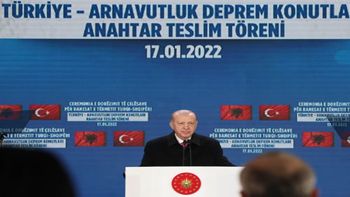 Cumhurbaşkanı Erdoğan, Türkiye-Arnavutluk Deprem Konutları Anahtar Teslim Töreni’ne katıldı