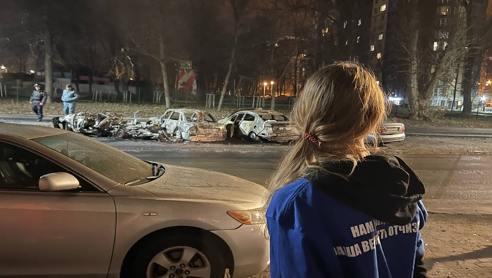 MGER aktivistleri, şehir merkezinin bombalanmasının ardından Belgorod şehir yetkililerinin sokakları temizlemesine yardım etti