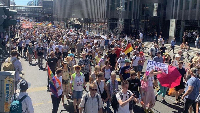 BERLİN’DE YASAĞA RAĞMEN BİNLERCE KİŞİ KORONA ÖNLEMLERİNİ PROTESTO ETTİ!