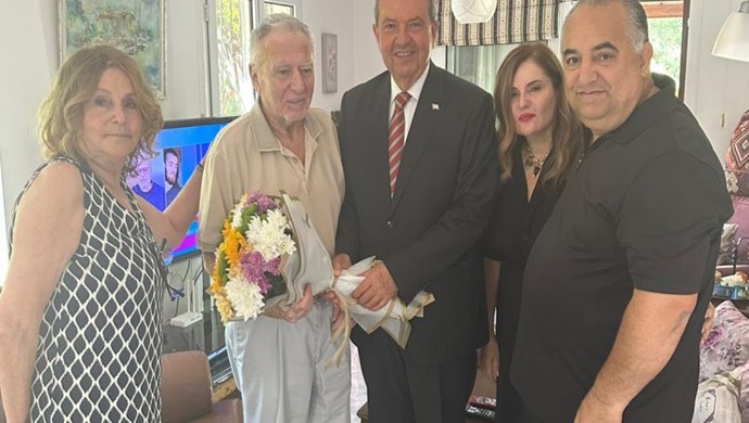 Cumhurbaşkanı Tatar, Kıbrıs Türk Devlet Tiyatroları’nın kurucusu, duayen tiyatro sanatçısı Hilmi Özen’i evinde ziyarete etti:
