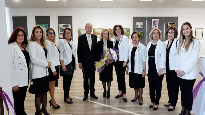 Cumhurbaşkanı Ersin Tatar eşi Sibel Tatar ile birlikte, Girne Özgürada Lions Kulübü tarafından düzenlenen “Kadın Dünyasından Renkler” isimli geleneksel resim sergisinin açılışına katıldı