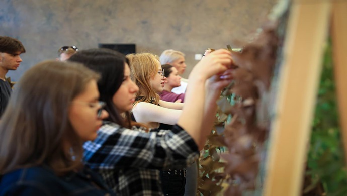 St. Petersburg’da Birleşik Rusya destekçileri ve sosyal aktivistler, kamuflaj ağları dokuma konusunda bir ustalık sınıfı düzenlediler.