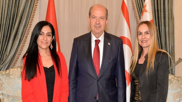 Cumhurbaşkanı Ersin Tatar, Kıbrıs Türk Genetik Derneği Başkanı Mahmut Çerkez, Thalassemia Derneği Başkanı Çiğdem Beşevlerli ve beraberindekileri kabul etti.
