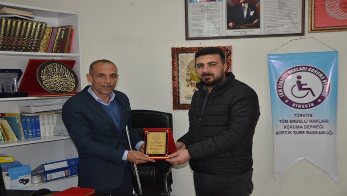 MUHTAR MEHMET ŞAHİN `E TÜRKİYE TÜM ENGELLİ HAKLARI KORUMA DERNEĞİNDEN TEŞEKKÜR PLAKETİ VERİLDİ