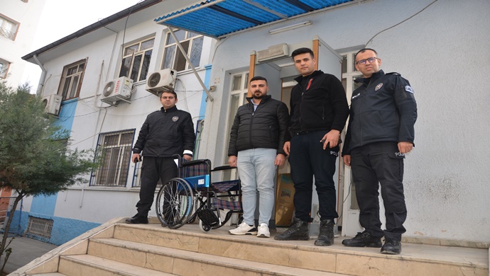 MUHTAR MEHMET ŞAHİN: BİRECİK FIRAT POLİS MERKEZİ AMİRLİĞİNE TEKERLEKLİ ENGELLİ SANDELYESİ TAKDİM ETTİ