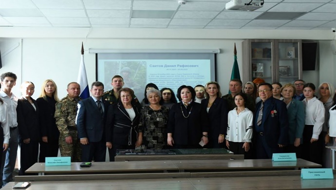 Kazan İnovasyon Üniversitesi kolejinde “Birleşik Rusya”, SVO katılımcısının anısına bir Kahraman Masası açtı