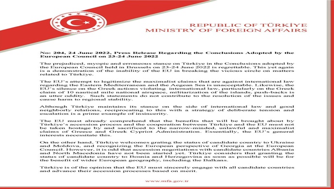 Press Release Regarding the Conclusions Adopted by the European Council on 23-24 June 2022