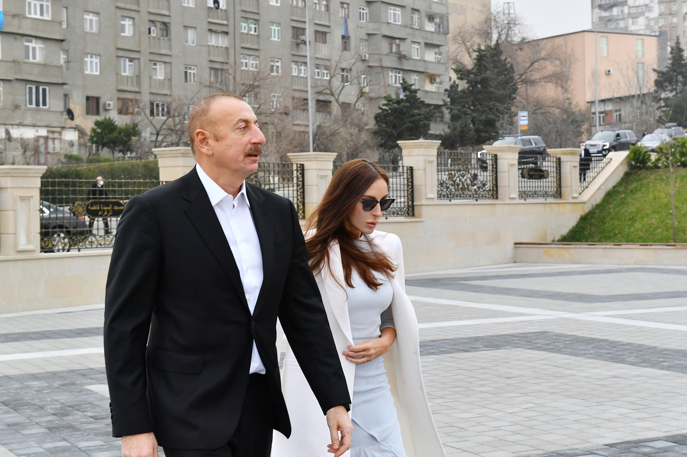 Azerbaycan Cumhurbaşkanı İlham Aliyev ve First Lady Mehriban Aliyeva, Bakü’nün Surakhani ilçesine bağlı Yeni Günaşlı yerleşimindeki Fatimeyi Zahra Camii’nin yeni binasında oluşturulan koşulları inceledi.