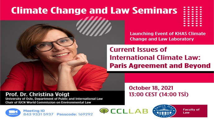 Kadir Has Üniversitesi Hukuk Fakültesi bünyesinde hayata geçecek olan İklim Değişikliği ve Hukuk Laboratuvarı (CCLLAB), iklim değişikliğinin hukuki boyutlarıyla ilgili bir dizi etkinliği de başlatıyor. CCLLAB’in 18 Ekim Pazartesi günü düzenlenecek açılış seminerini, bu alanın önde gelen isimlerinden Prof. Dr. Christina Voigt veriyor.
