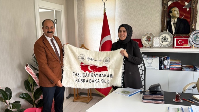 AĞRI İLİ DAMIZLIK KOYUN KEÇİ YETİŞTİRİCİLERİ BİRLİĞİ BAŞKANI MEHMET NURİ SAMANCI`DAN TAŞLIÇAY KAYMAKAMI KÜBRA BAKA KILIÇ`A ZİYARET