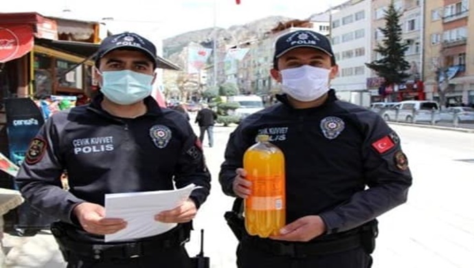 Korona virüs (Kovid-19) salgını tedbirleri kapsamında kent merkezinde Hayat Eve Sığar (HES) kodu uygulaması yapan polisler Serhat Dipi ve Yunus Pek karşılaştıkları yaşlı bir kadının bilgilerini sorguladı. Elinde iki ekmek bulunan kadının “Meşrubat alamadım” demesi üzerine yakındaki bir büfeye giden polisler yaşlı kadının istediği içeceği alarak köyüne yolcu etti. Yürekleri ısıtan o anlar çevredeki güvenlik kamerasına ve bir vatandaşın cep telefonu kamerasına yansıdı.